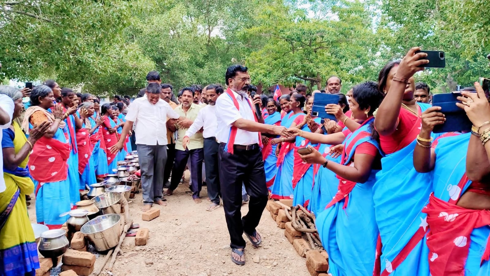 விசிக தலைவர் திருமாவளவன் பிறந்தநாளை முன்னிட்டு கடலூர் மேற்கு மாவட்ட விசிக சார்பில் மாவட்டச் செயலாளர் திராவிடமணி தலைமையில் பொயனப்பாடி ஆண்டவர் திருக்கோவில் வளாகத்தில் 1063 பெண்கள் விசிக சேலை அணிந்து 1063 பானையில் பொங்கல் வைத்து வாழ்த்து தெரிவித்தனர்.